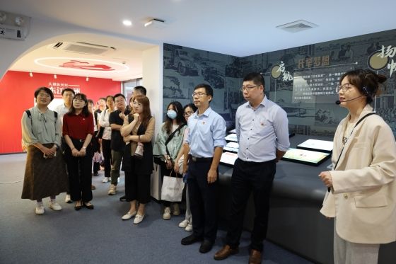 “东江红洲”东莞市国有企业党建基地位于鳒鱼洲,这里曾诞生了新中国成立以来东莞第一批国有企业,掀开了东莞社会主义建设的序章。基地对东莞国资国企发展历史进行了全面的梳理与总结,对东莞国资国企精神基因进行了探寻与传承。活动现场,师生党员们跟随讲解员的脚步和讲解,通过观看历史照片、珍贵文物以及文献资料等,体悟国资国企的初心与梦想,感受东莞国资国企的发展与变迁历史,学习东莞市国有企业的拓荒与改革精神。