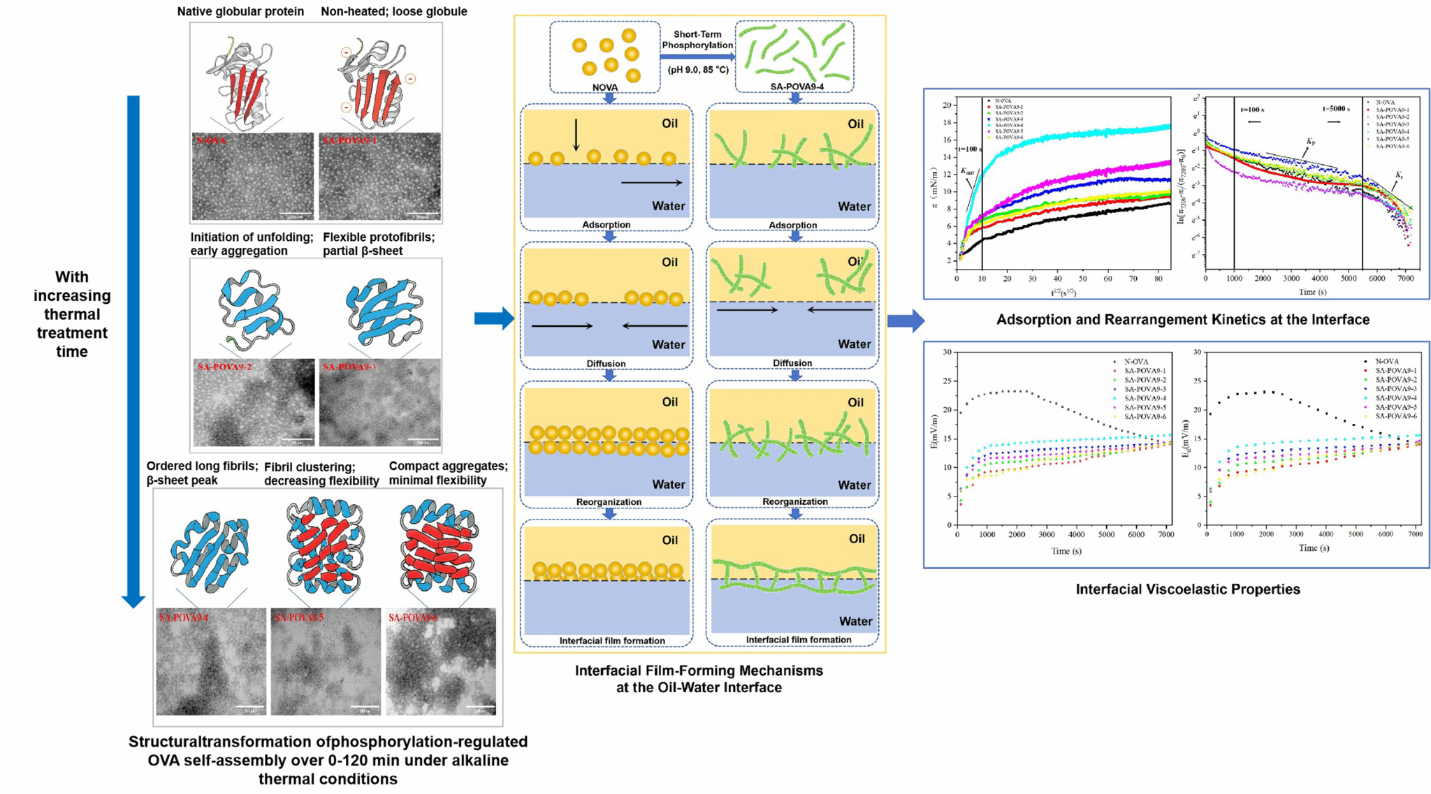 肖珊教授团队于国际食品顶级期刊《Food Hydrocolloids》(IF = 12.4)在线发表题为“Short-Term Phosphorylation Regulates Ovalbumin Self-Assembly into Functional Aggregates at the Oil-Water Interface: Structural Transformation and Interfacial Film-Forming Mechanisms”的研究性文章。论文第一作者为熊舟翼特聘副研究员,共同通讯作者为肖珊教授。