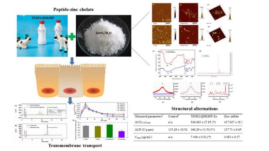 锌,对机体生长发育和免疫系统功能的完善尤其重要,被称为“生命元素”。然而,膳食结构中的植酸、皂苷等抗营养因子会阻碍锌的吸收和利用,导致人体锌缺乏。肽-锌螯合物(peptide-zinc chelate, PZC)由于其特殊的功效,成为促进锌吸收的营养递送体受到广泛关注。PZC是以食源性多肽为结构基础构建的复合物,它能够避免锌离子在消化道内沉淀,同时还能减少锌离子吸收过程中其他营养元素的竞争性抑制作用。目前,PZC在营养学领域的应用仍然存在一个巨大的挑战亟待解决,即不同来源、不同氨基酸序列多肽构建的PZC促锌吸收效果的稳定性差异巨大,并且调控困难,严重限制了其在营养学领域的深度开发和应用。