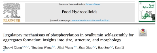 王际辉教授团队于国际食品顶级期刊《Food Hydrocolloids》在线发表题为“Regulatory mechanisms of phosphorylation in ovalbumin self-assembly for aggregates formation: Insights into size, structure, and morphology”的研究性文章。论文第一作者为熊舟翼特聘副研究员,通讯作者为新加坡国立大学食品科学与技术系助理教授LI Dan。