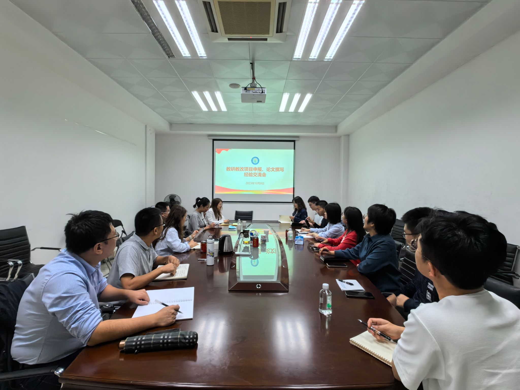 于10月8日下午在学院会议室举行教研教改项目申报及论文撰写经验交流会。本次交流会邀请了李玉婷和陈旭两位教师分享教研教改项目申报及论文撰写的经验心得,学院副院长邓见光、部分专任教师及辅导员等参与研讨交流。