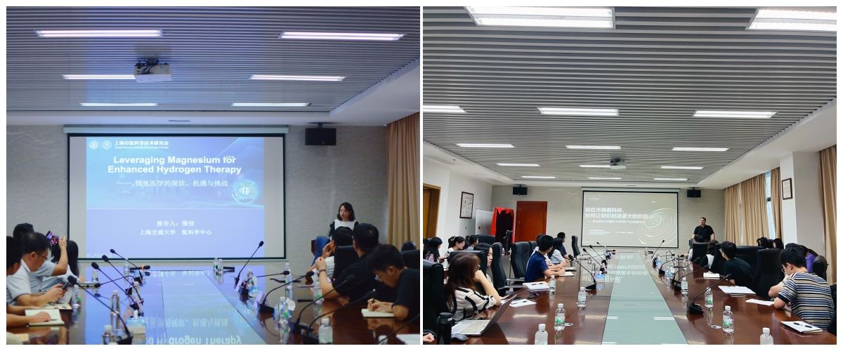 研究生学术论坛系列讲座第一期在科创院会议室顺利举行。本期讲座邀请到上海交通大学氢科学中心裴佳教授、丁之光博士以及“每年轻”品牌创始人周孝华3位嘉宾就“氢在生物与医药领域的应用”的科研进展和学术成果进行分享。讲座由副院长肖珊主持,院长王际辉和副院长闫景坤应邀出席,学院师生总计50余人参加。