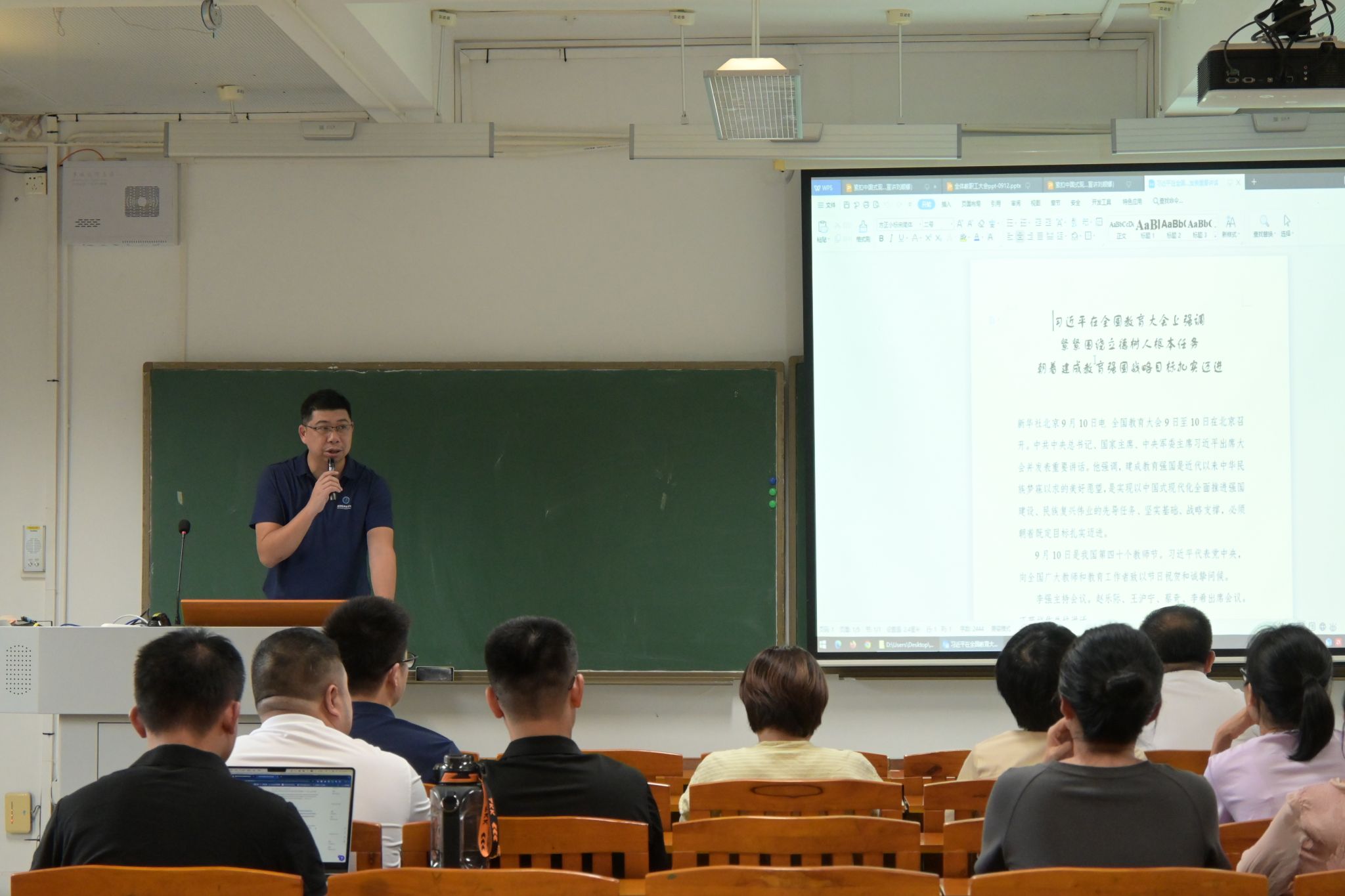 在教学楼6C-401召开教职工大会开展师德师风教育工作。学院全体教职工出席本次会议,会议由学院党委副书记葛金虎主持。