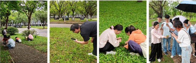 活动现场,同学们手持记录本,仔细寻觅、专业辨认,在校园内发现并记录了猫毛草、铺地锦、白花蛇舌草、车前草、鬼针草、水晶萝卜、一点红、艾草、蒲公英、积雪草、飞蓬草、飞扬草、含羞草、龙葵、黄花酢浆草、蕨、墨旱莲等十余种天然植物资源,充分领略了校园植物多样性的丰富内涵。