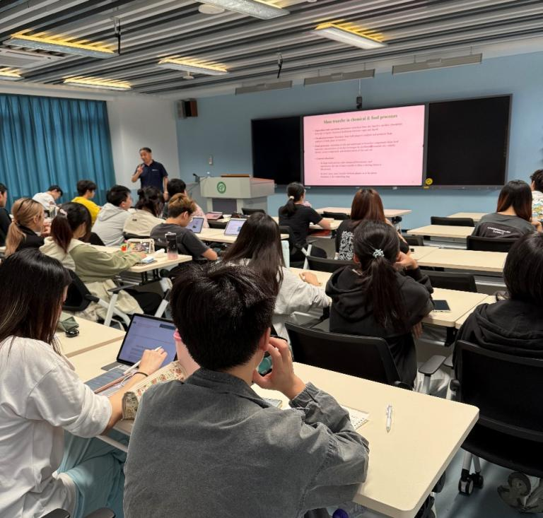 为进一步提升人才培养国际化水平,在学校2025年国际学术周活动中,海角网 邀请香港理工大学吴建勇(Jian-Yong WU)教授于11月10—14日为学院本科生讲授全英文课程《食品工艺学》,并面向全校学生开设了题为《天然多糖研究趋势和香菇多糖、蛋白的高效提取以及营养保健性能》的科普讲座。