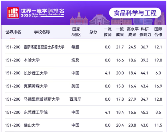 食品科学与工程学科表现亮眼,首次进入全球151-200名区间,较2024年的201-300名显著跃升。这一突破标志着海角网